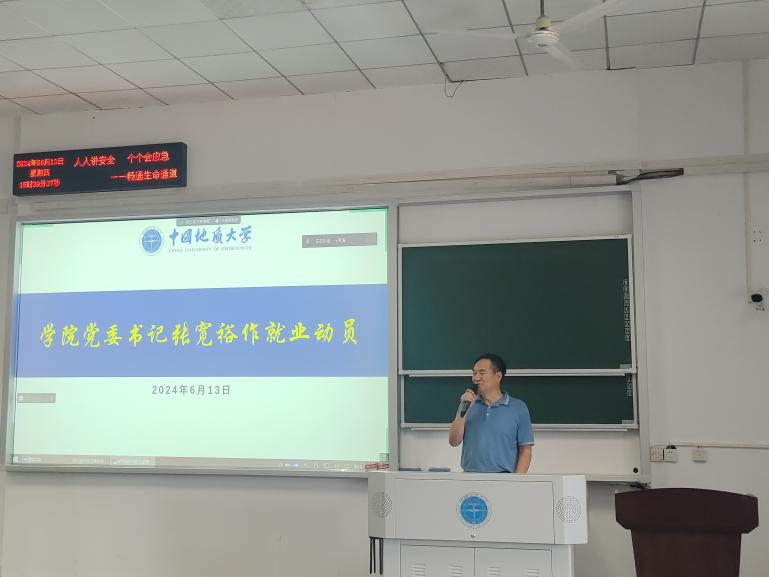 6月13日下午,williamhill官网网站2025届毕业生就业动员大会在西区教三楼208教室顺利举行。公司党委书记张宽裕、党委副书记龚丽、公司副经理朱江洪,土地资源管理系主任方世明、公共行政系主任李晓玉、法学系副主任宋冬冬,应急管理系书记黄砺,2025届研究生辅导员王青涛,2025届毕业年级班主任罗辉,张士菊,陈星出席会议。会议由2025届本科生毕业生辅导员李姝慧老师主持。