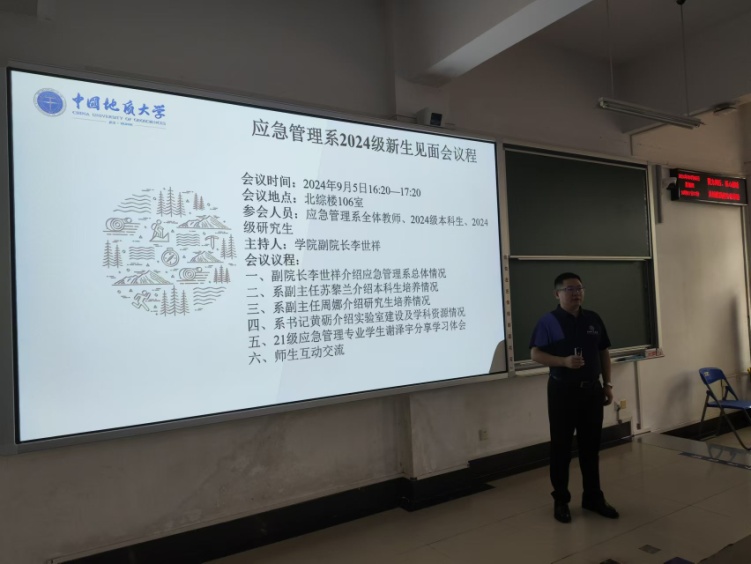 (通讯员 陈星) 9月5日,应急管理系在北区综合楼106教室举行了新生见面会,应急管理系教师、2024级本科生及研究生新生参加,见面会由公司副经理李世祥教授主持。