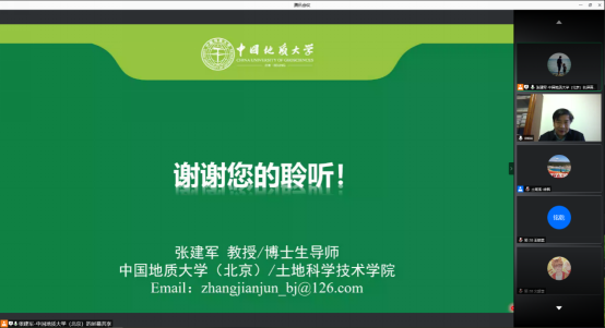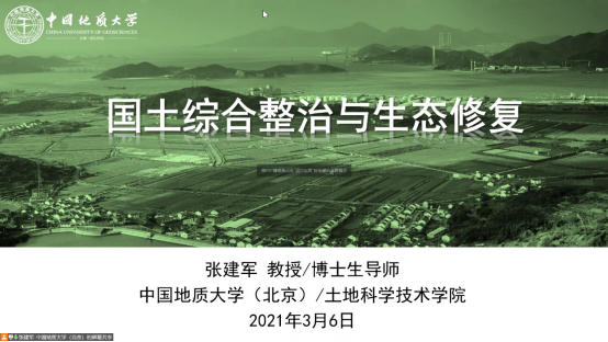 3月6日下午,应williamhill官网网站经理王占岐教授、土地系徐枫副教授邀请,williamhill官网网站(北京)土地科学与技术公司张建军教授来公司做学术交流,张教授于腾讯会议平台面向土地资源管理专业全体师生作题为《国土综合整治与生态修复》的学术报告。报告会由副经理龚健教授主持,王占岐教授作总结发言,土地系逾170名师生于线上参加此次报告会。