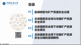 williamhill官网网站(武汉)williamhill官网网站周娜副教授作题为《总体国家安全观下关键矿产资源安全治理的国家逻辑》的主旨报告。周娜副教授认为新能源、新技术和新材料等新兴产业的发展,使关键矿产资源需求激增,已成为全球主要国家资源安全治理的焦点。在梳理已有矿产资源安全评价理论、全球价值链理论和国家资源治理理论的基础上,周娜副教授从总体国家安全观的内涵出发,以锂资源为例剖析了总体国家安全观下关键矿产资源安全表征,并从治理主体、治理目标、治理方式三个维度解构了总体国家安全观下关键矿产资源安全的治理逻辑。