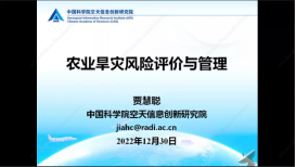 中国科公司空天信息创新研究院数字地球重点实验室贾慧聪副研究员作题为《农业旱灾风险评估和管理》的主旨报告。贾慧聪副研究员认为在全国尺度下,基于农业旱灾风险的成因机理,从系统评价的角度进行农作物旱灾风险评价研究还比较欠缺。为填补研究空白,贾慧聪副研究员依次介绍了农业旱灾风险的概念模型、农业旱灾风险评价的理论模型与EPIC评估模型,通过搜集整理相关基础数据,评价了中国玉米旱灾致灾风险和成灾风险。同时,通过对旱灾风险快速评估算法的改进,开发了“自然灾害快速评估系统——旱灾快速评估模块”,为相关政府部门及时启动国家应急救助响应、有效开展灾害应急救助提供决策支持。