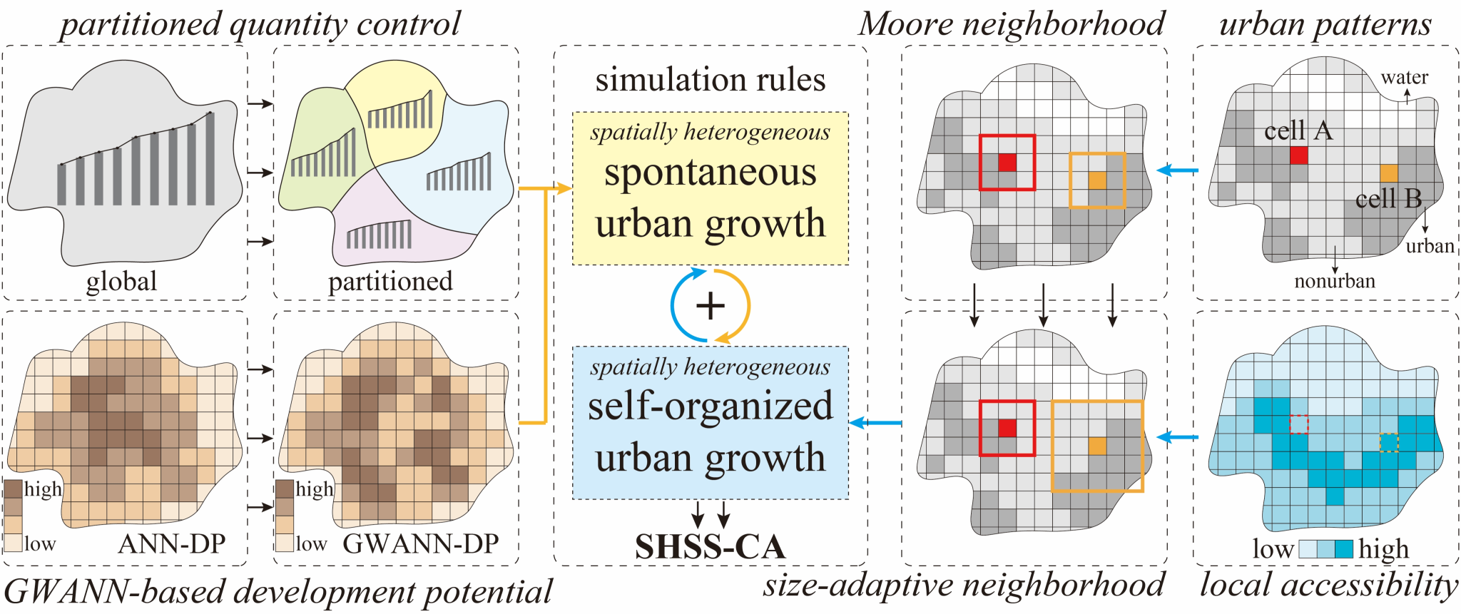 图2 顾及空间异质性的城市自然和自组织过程耦合模拟框架