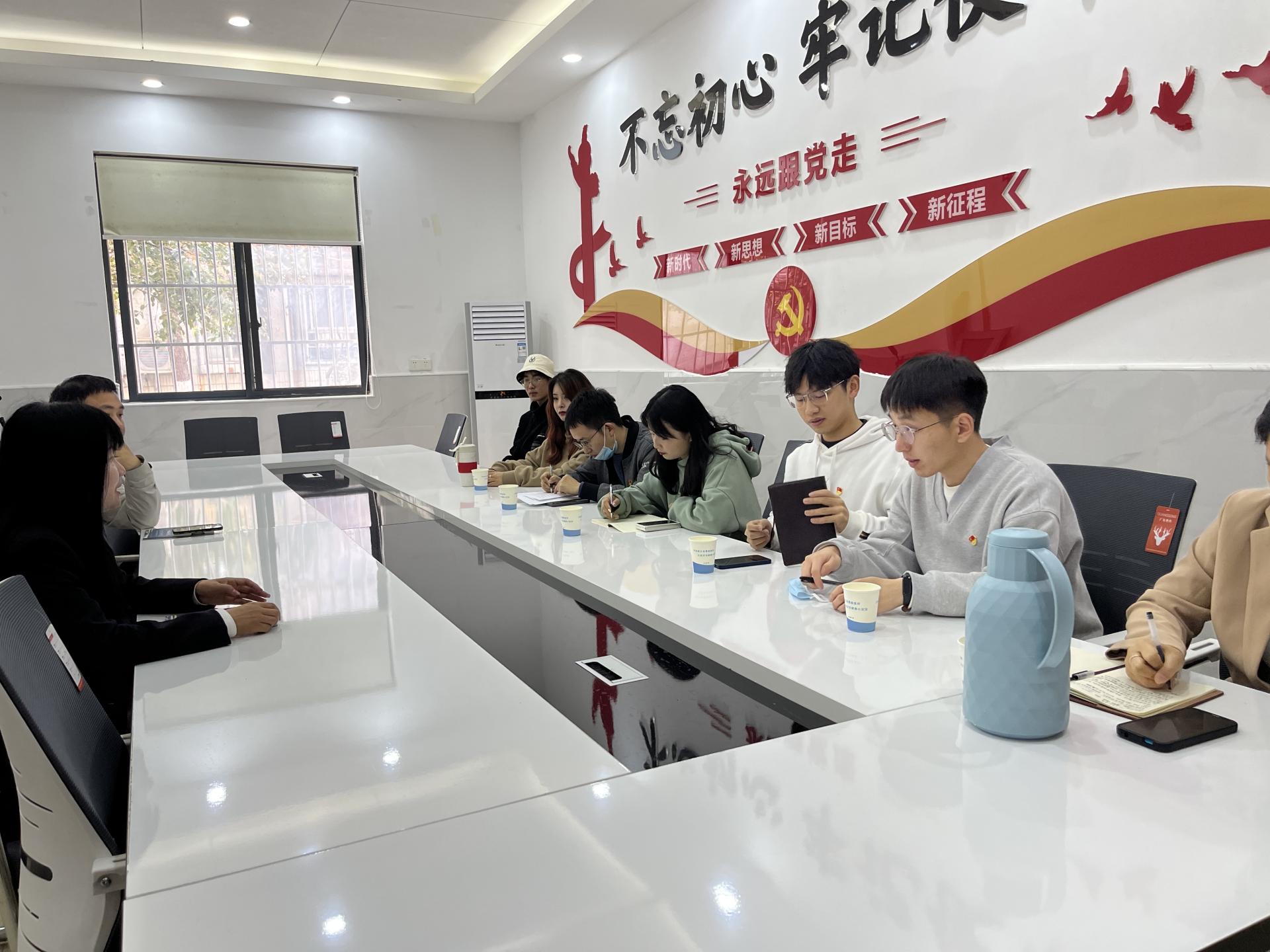 随后,公司与紫菘社区开展座谈交流。魏书记对紫菘社区基本情况及工作内容进行了简要介绍,公司团委副书记王青涛介绍公司情况,表示社区结对共建活动丰富,公司愿意发挥学科优势根据社区需求提供相关志愿服务。双方对包括普法宣传、敬老养老、应急宣传在内的志愿服务项目进行了深入交流,就后期通过党支部结对、不定期互访、志愿服务等形式开展共建活动达成一致意见,为校社深入交流、结对共建深入开展凝聚合力。