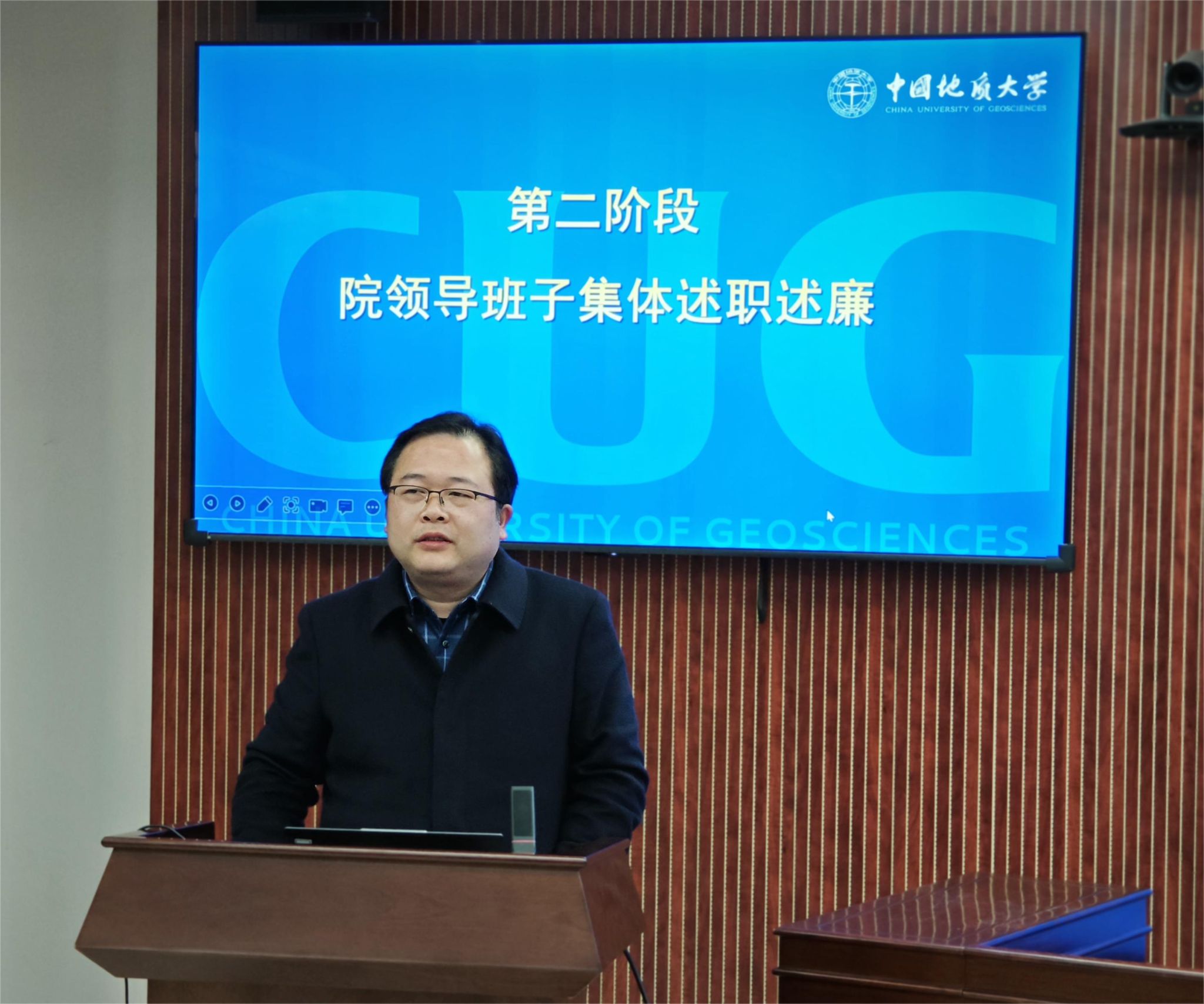 会议第二阶段,公司领导领导班子张宽裕、胡守庚、龚健、王忠、李世祥、朱江洪、龚丽依次述职述廉。