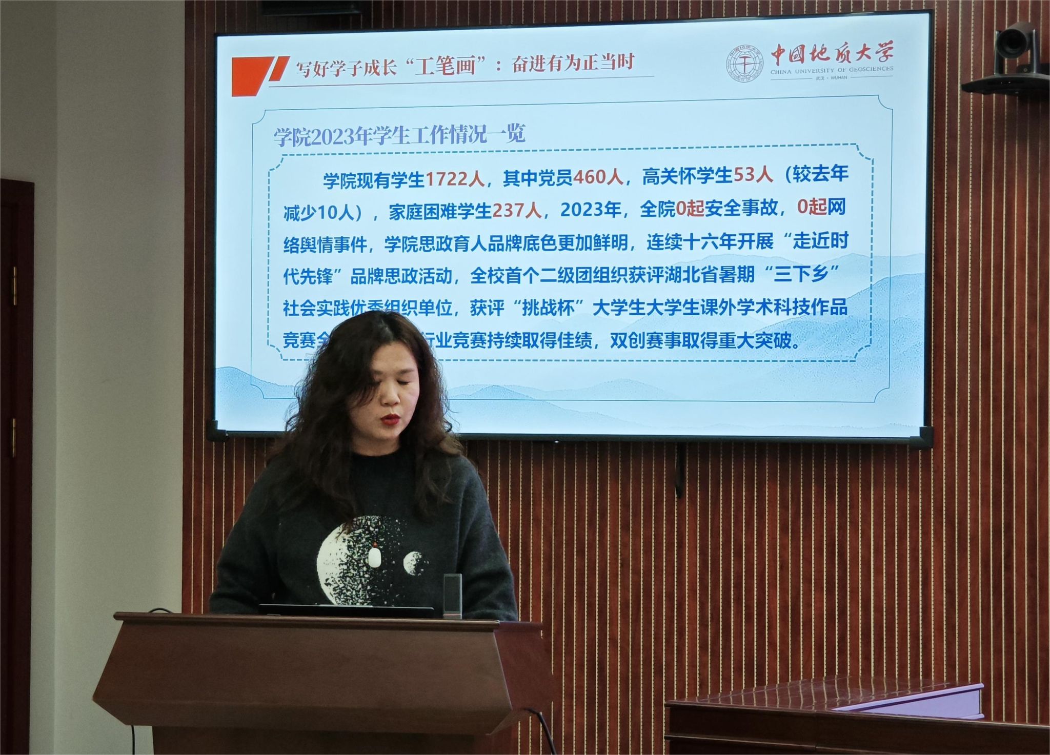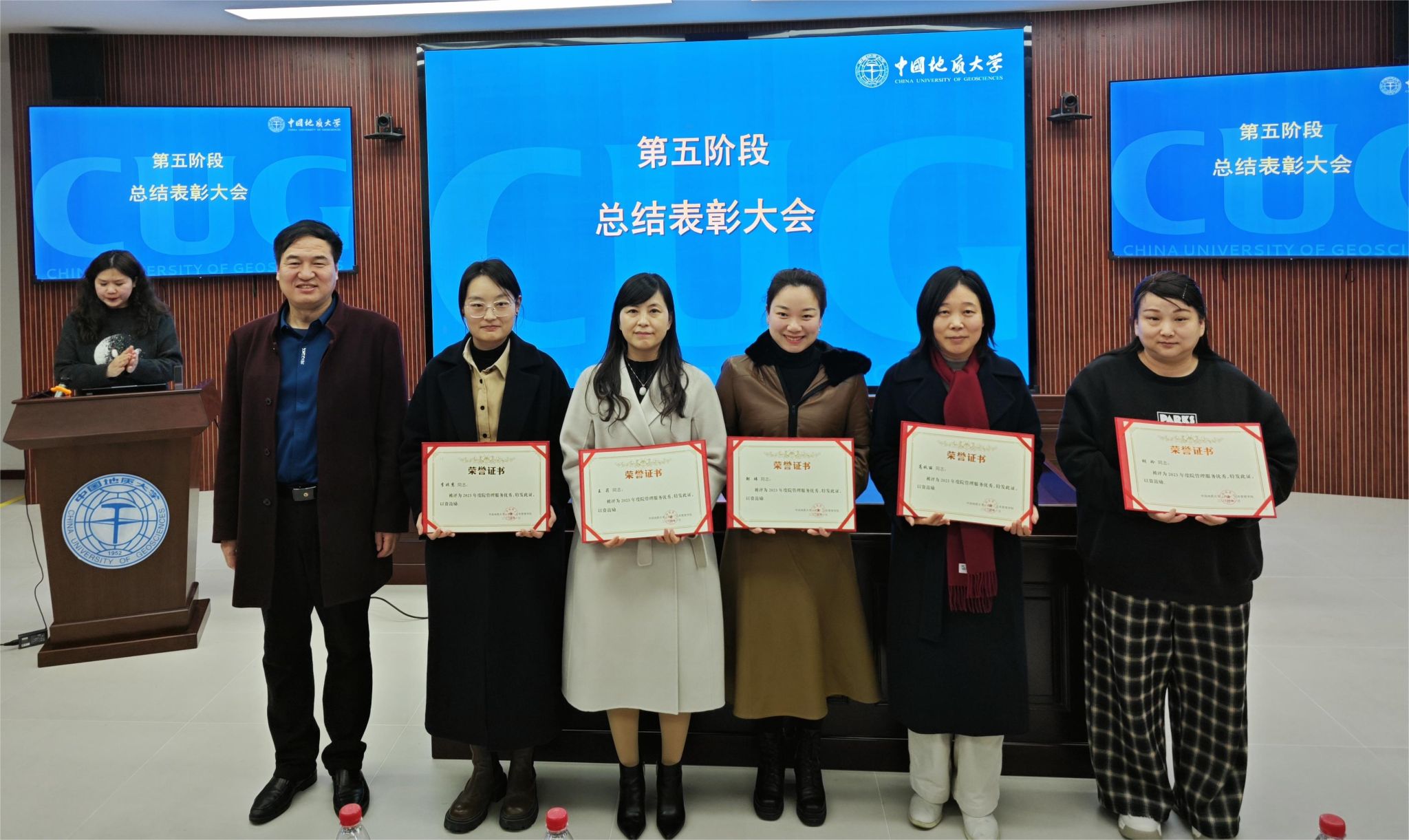 会议第五阶段,进行总结表彰。由公司党委副书记龚丽宣读公司表彰决定。表彰综合优秀、教学优秀、科研优秀、国家自科基金和社科基金获得者、团队建设优秀、公共管理博士学位点评估优秀、自然资源部法治研究重点实验室评估优秀、实验室建设优秀、人才工作先进、管理服务优秀、优秀班主任、人才招聘先进、宣传先进、工会积极分子、办学条件改善专项先进等。