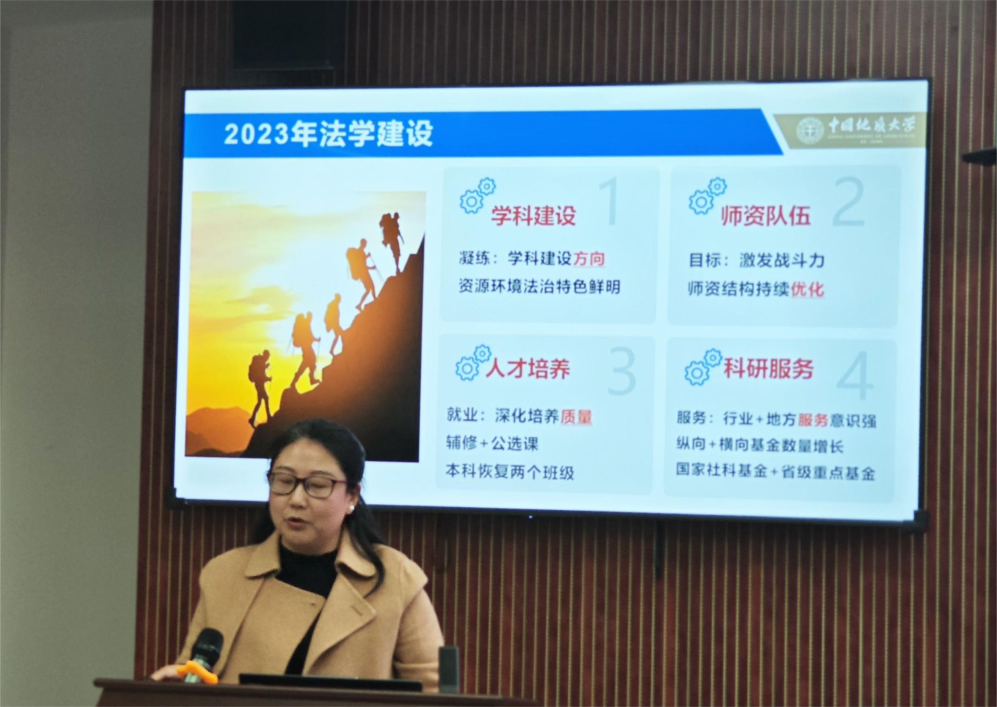公共行政系、土地资源管理系、法学系、自然资源部法治研究重点实验室依次报告2023年度主要工作及2024年工作重点。