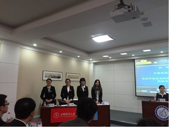 3月29日下午,法辩盟初赛。比赛围绕电商平台应/不应该为网店的知识产权侵权负责展开,公司为正方,李琴鸽、刘杨明珠、曹勐菲、武鑫蓉四名同学与武大辩友共同向观众展示了一场精彩的辩论赛,最终地大以5:0的优势打败武大,最佳辩手武鑫蓉。