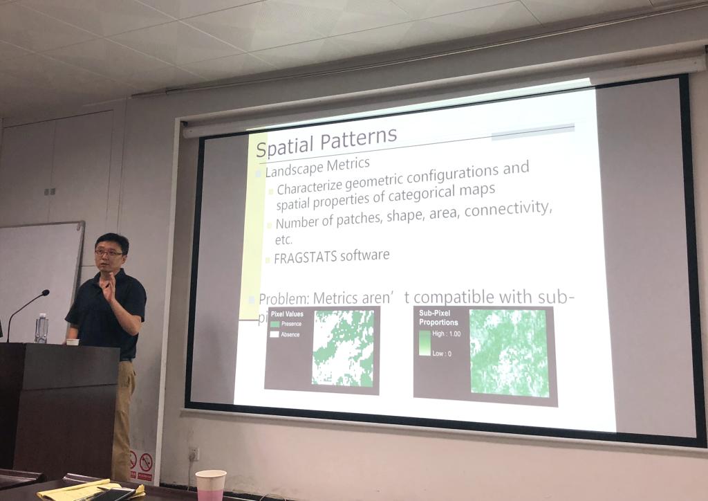 王乐教授的报告从物种入侵的时空遥感监测问题出发,系统地介绍了入侵物种的物候信息遥感提取、基于时相(物候)-空间信息相结合的混合像元分解、生物控制对入侵物种影响的遥感评估等系列研究的最新进展。
