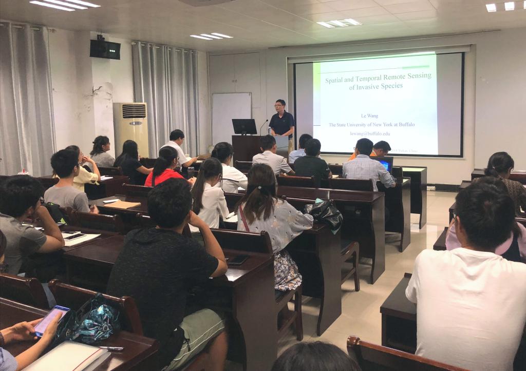 应williamhill官网网站王占岐教授和胡守庚教授邀请,美国纽约州立大学布法罗分校地理系王乐教授来公司访问,并于6月1日下午在公管新楼101报告厅做了题为“基于时空大数据遥感研究全球气候变化下的物种入侵机制”的学术报告。学术报告由王占岐教授主持,来自土地系、区划系以及校内其他院系的师生共60余人参加了此次报告会。