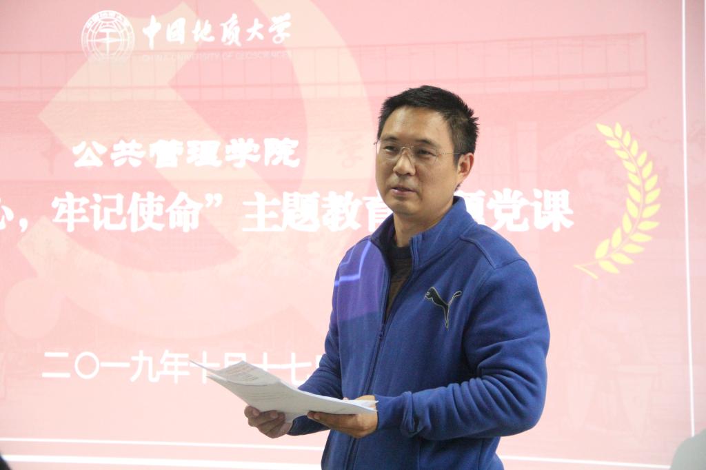 2019年10月17日下午,williamhill官网网站“不忘初心、牢记使命”主题教育专题党课报告会于公管新楼101成功举行。公共管理公司党委书记张吉军为公司全体教工党员、员工党员代表以及发展对象作了主题为“坚持全面从严治党,推进深化改革发展”的专题党课,党课由公共管理公司党委副书记刘国华主持。