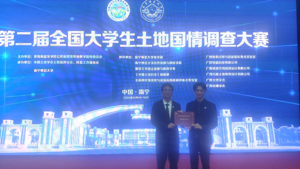 2020年11月15日,第二届全国老员工土地国情调查大赛决赛在南宁师范大学顺利举行。由公司杨剩富、瞿诗进两位老师指导,土地资源管理专业本科生程昊楠、胡鸿伟、武可菲、张栋、吴春华、于丰赫同学组成的“南望嘉善”团队完成的作品《浙江嘉善县“土地流转+村级托管”模式推广的可行性研究》成功晋级决赛,并荣获大赛二等奖。