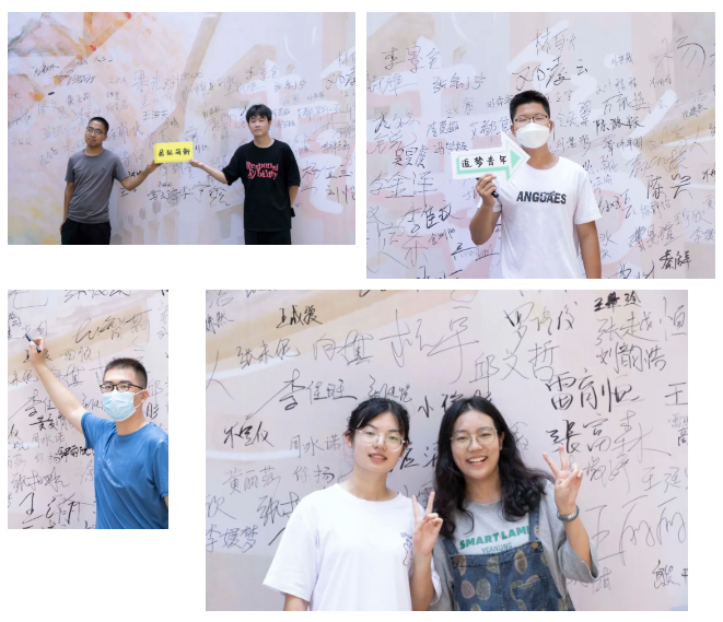 新生们完成报到手续后,纷纷到专属公管公司的签名墙上留下自己的名字并合影留念。
