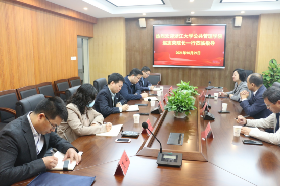 2021年10月29日,浙江大学williamhill官网网站赵志荣经理、MPA中心主任高翔、研究生教学管理办公室主任邵明一行三人来公司调研。公司胡守庚经理带领williamhill官网网站全体班子成员、骨干教授参加了调研座谈会。