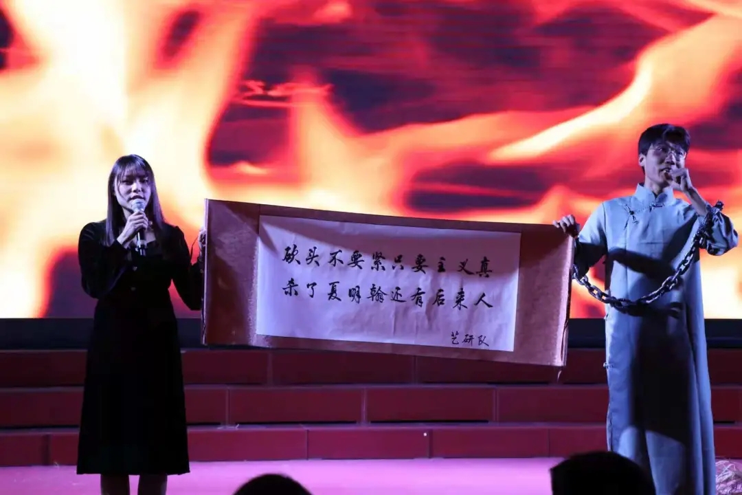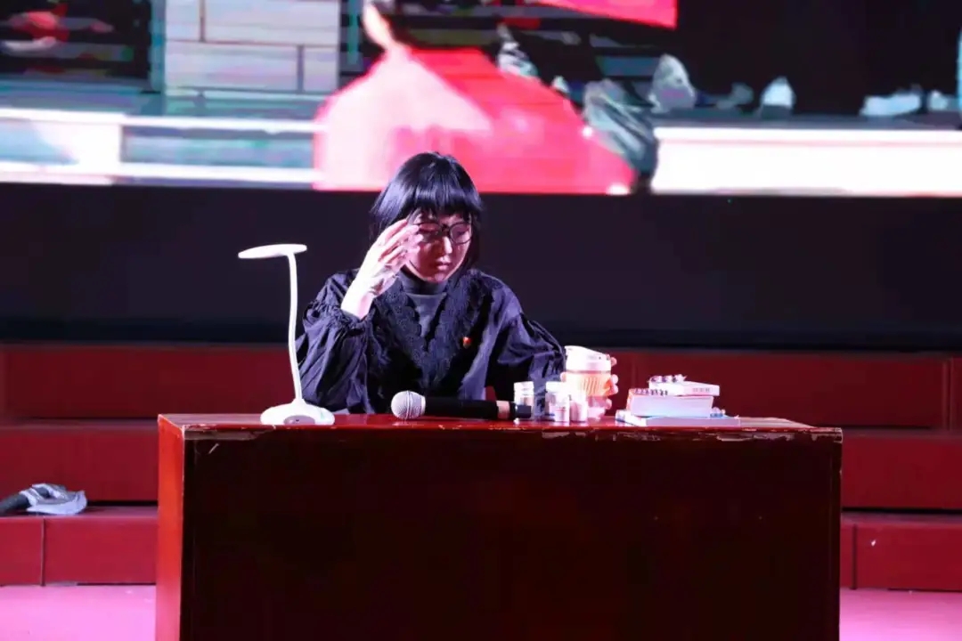 还我总指挥”队则通过一次跨越时代的梦境交织表演出卢德铭同志敢于直面命运、坚持理想信念的事迹,让我们从他的至死不渝中看到了一个共产党人不灭的意志与传承。随后,致敬星火队展现了张桂梅董事长帮助解决一名女生因贫困无法上学问题的片段,在细节的演绎中表达出对张桂梅董事长的真挚感谢,呼吁广大青年一代传承其坚守初心、无私奉献的精神。