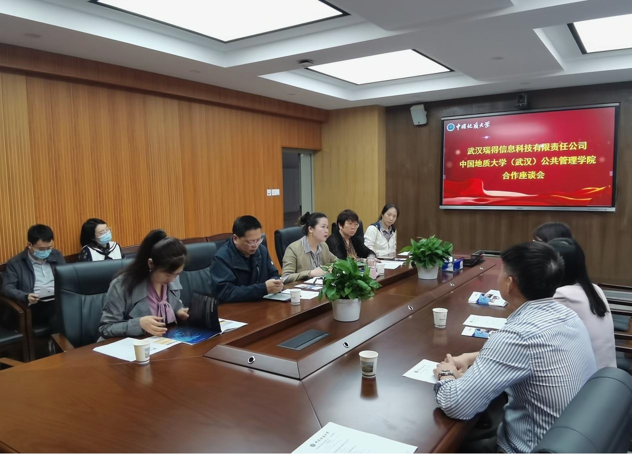 (通讯员 王欣雨)5月20日上午,武汉瑞得信息科技有限责任公司副总裁柯艳丽一行来公司进行合作座谈。williamhill官网网站副经理朱江洪、党委副书记龚丽、公共行政系主任李晓玉、土地资源管理系党支部书记姚小薇、法学系党支部书记徐明、团委副书记李姝慧及学工组辅导员参加本次座谈会,会议由党委副书记龚丽主持。