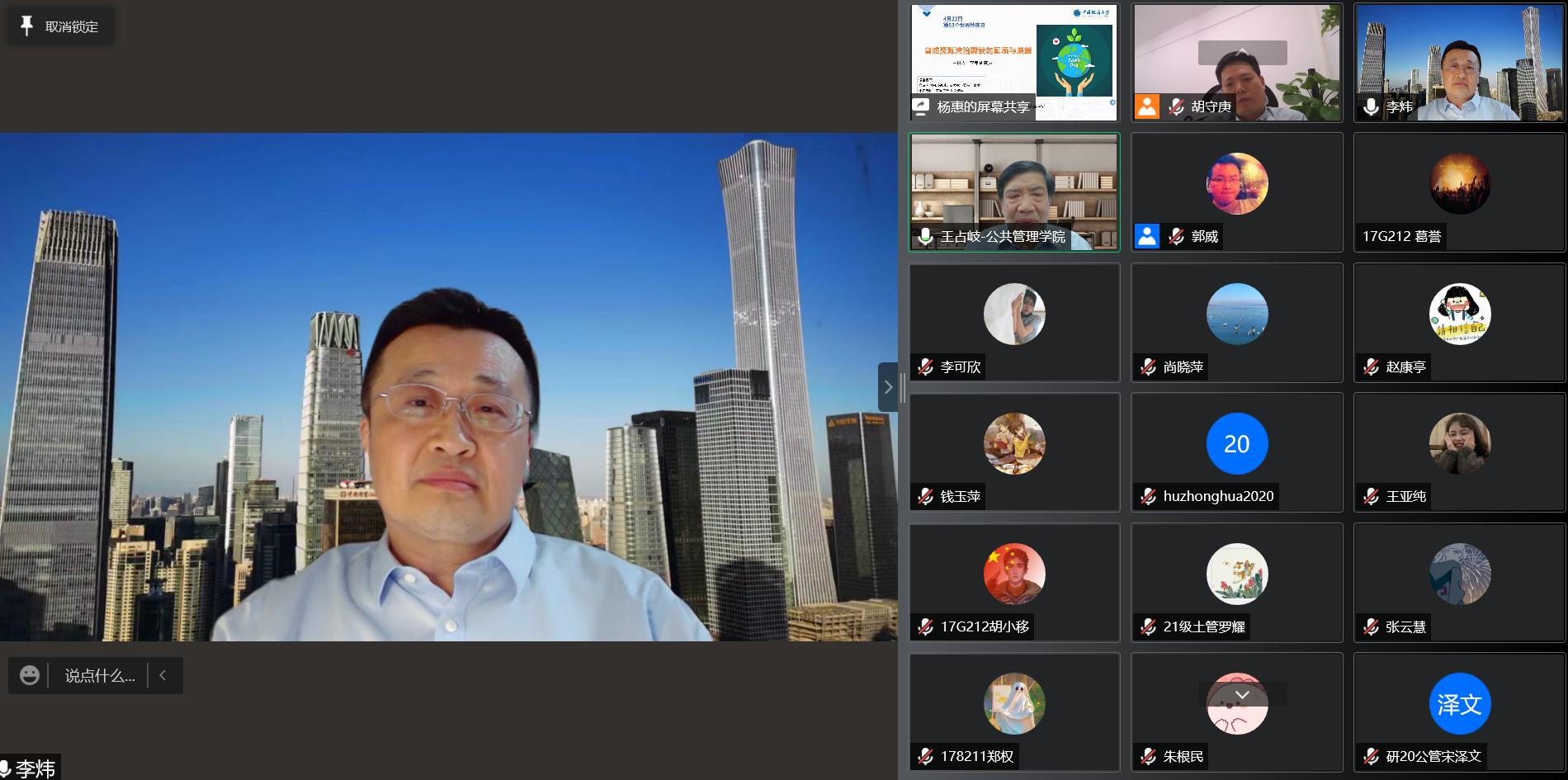 4月22日是第53个世界地球日,为深入学习宣传贯彻习近平生态文明思想,自然资源部法治研究重点实验室、williamhill官网网站成功举办“422地球日”专题线上研讨会。公司党委副书记唐辉明出席会议并致辞,自然资源部不动产登记中心(法律事务中心)副主任李炜以“自然资源法治建设的回顾与展望”为主题作专题报告,公司公管公司师生、自然资源部不动产登记中心相关人员参加了此次学术活动。williamhill官网网站经理胡守庚主持会议。