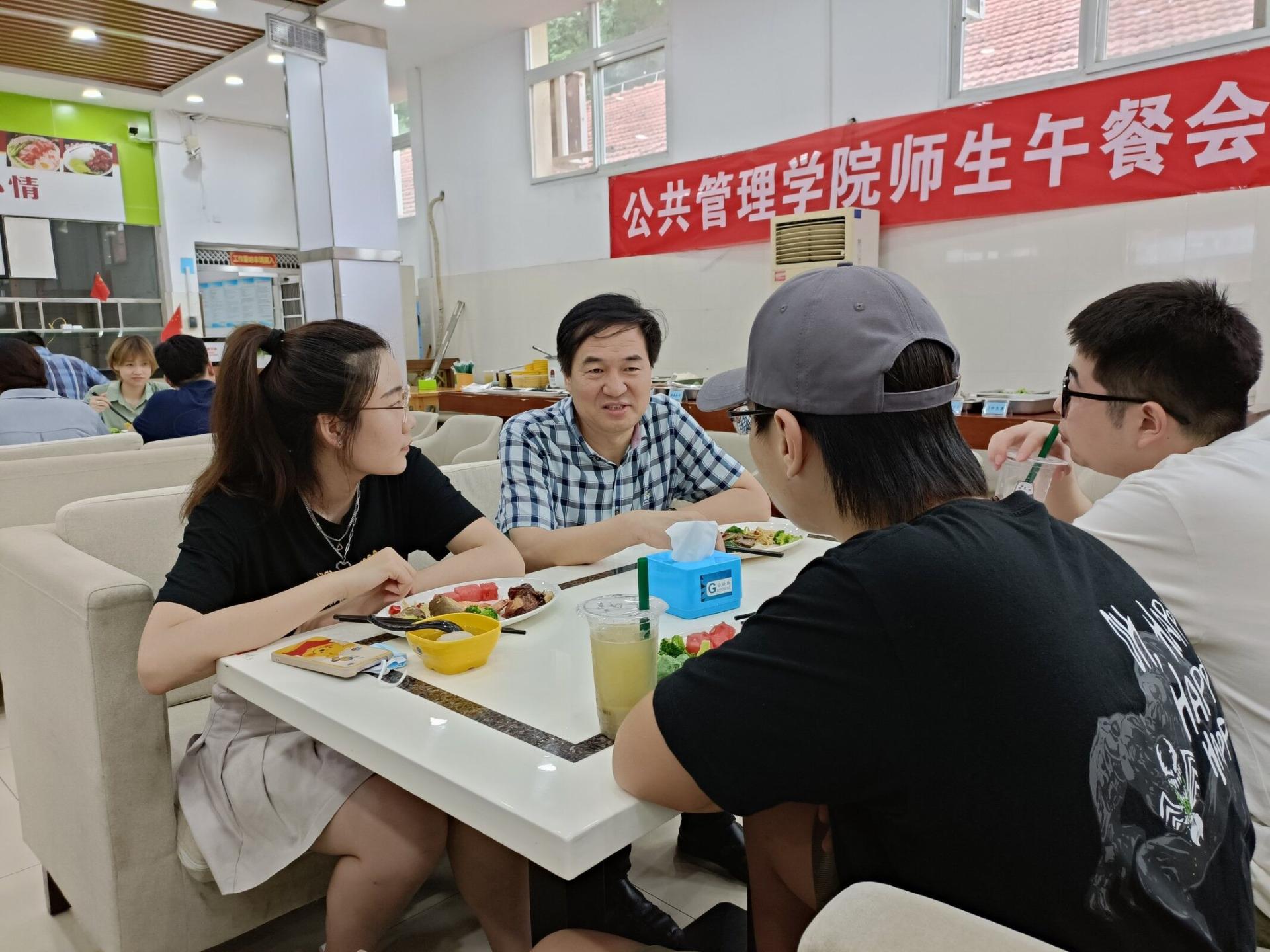 为进一步促进师生交流,贯彻落实《党员干部下基层察民情解民忧暖民心活动实施方案》,公司于6月24日中午在北区食堂二楼举办williamhill官网网站师生午餐会。公司党委书记张宽裕,经理胡守庚,副经理龚健、王忠、朱江洪,党委副书记龚丽,土地资源管理系方世明、周学武,法学系胡中华,公司综合办公室彭珂、李继杰等老师,学工组全体辅导员及各系本、硕、博员工代表参加本次午餐会。午餐会饭菜由北区饮食服务中心提供。