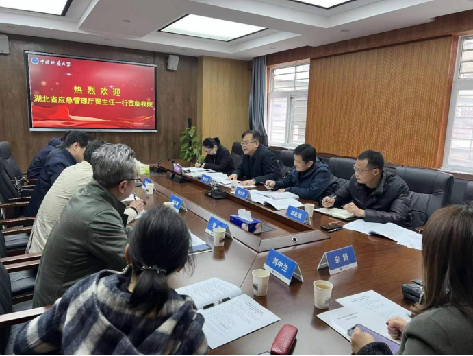 会议伊始,张宽裕书记首先表达了对贾新军主任一行的热烈欢迎,并向贾主任一行介绍了公司历史沿革、专业设置与团队建设方面的基本情况。张书记在介绍时强调,公司应急管理专业经过近三年的努力探索,已在专业发展、人才培养、科学研究、政产学研用融合发展等方面取得了一系列重要进展,希望能在双方深入合作的过程中,将地大的学科专业优势与自然灾害技术中心的技术优势和需求导向充分融合。贾新军主任对张宽裕书记的欢迎表示感谢,介绍了湖北省自然灾害应急技术中心的发展历程与所承担的主要工作,并高度肯定了公司在湖北省自然灾害风险普查工作中所发挥的重要作用。