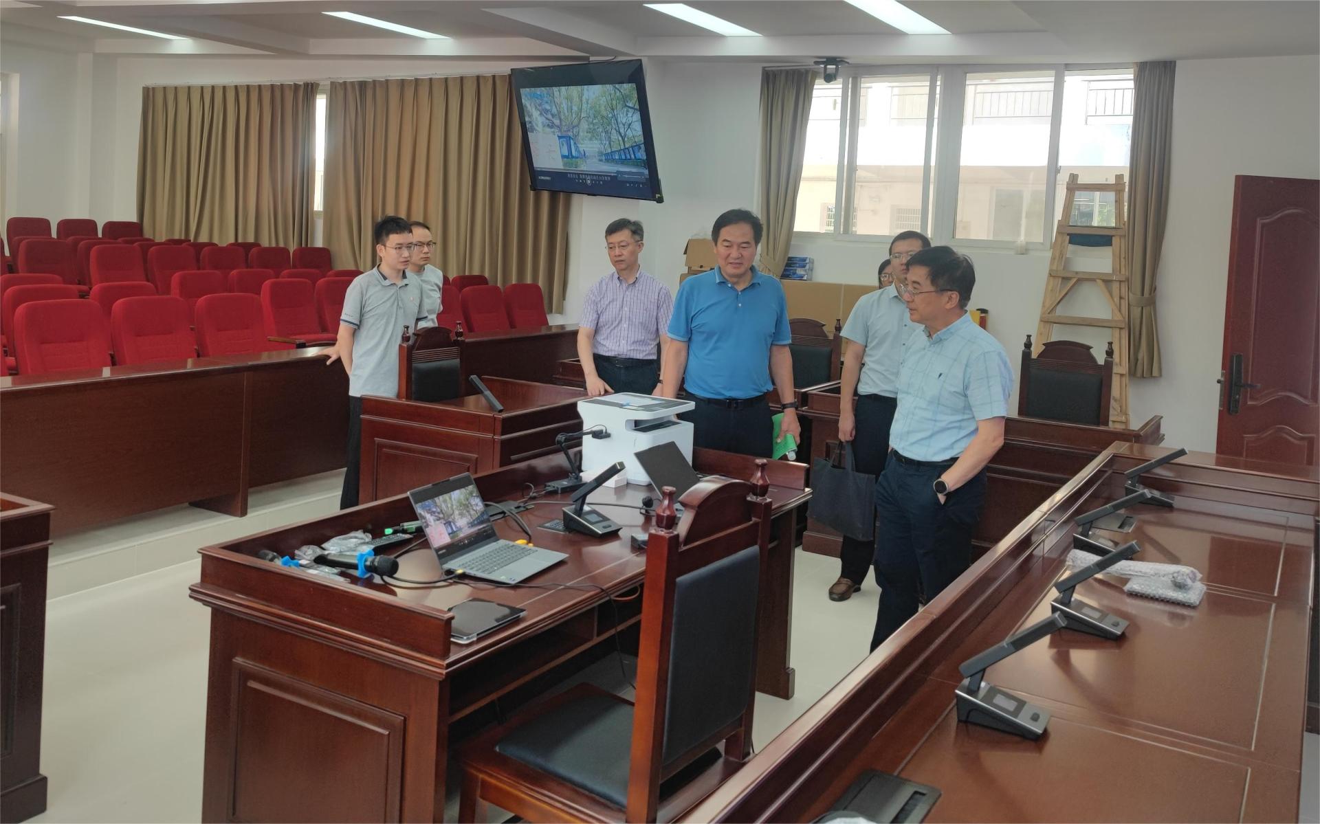 王董事长指出,模拟法庭的建设充分考虑了智能化、专业化和实用性的要求,为师生提供了一个高质量的学习和实践环境,一定要用好这个实践教学平台。王董事长询问了公司与地方法律实务部门的合作情况,强调公管公司要以智能化模拟法庭的建成与使用为契机,加强与法律实务部门的交流,特别建议公司与湖北省高级人民法院和湖北省人民检察院加强合作,紧紧围绕员工法律素养和实践能力的提升做好文章。
