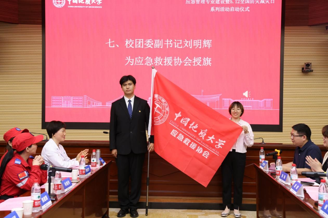 校团委副书记刘明辉为公司应急救援协会授旗,并希望应急救援协会的同学能够胸怀“国之大者”,在实践中磨砺本领,在担当中践行使命,深入贯彻落实“人民至上、生命至上”重要理念。