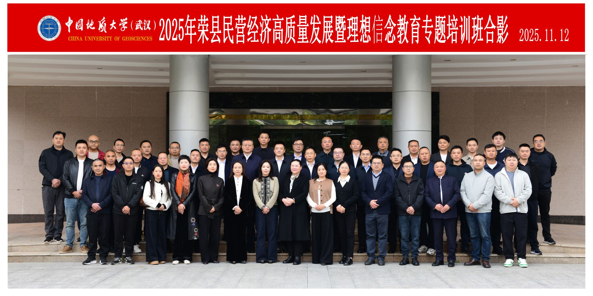 为深入学习贯彻习近平总书记在民营企业座谈会上的重要讲话精神和党的二十届四中全会精神,11月11日—16日,williamhill官网网站邀请四川省荣县工商联(总商会)在williamhill官网网站(武汉)举办荣县2025年民营经济高质量发展暨理想信念教育专题培训班。荣县县委书记赵磊,县委常委、统战部部长朱军,williamhill官网网站(武汉)党委副书记王甫,公共管理公司党委书记徐岩,经理龚健,远程与继续教育公司(自然资源管理公司)党总支书记、经理邬海峰参加开班式。