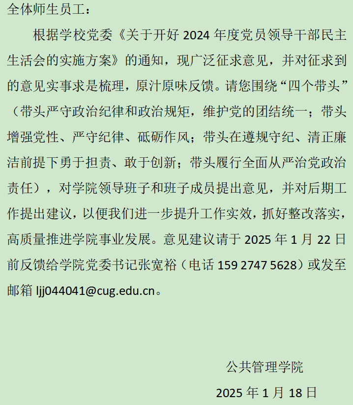 关于征求2024年度公司领导班子民主生活会意见建议的公告