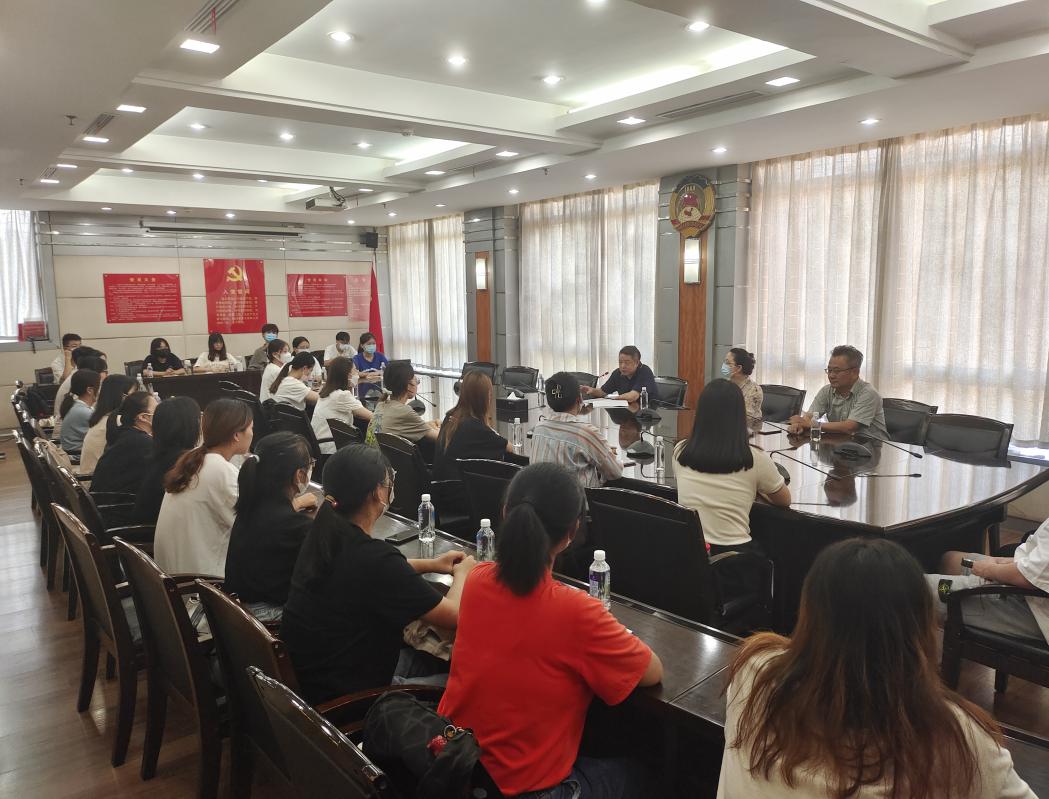 见面会上,洪山区委直属机关工委鄢裕高书记向同学们的到来表示热烈欢迎并发表讲话。首先介绍了洪山区的基本情况,鄢书记讲到,洪山区是名副其实的大学之城,在校老员工60多万名,占到全区总人口的一半以上,是全国科教资源最为丰厚的城区之一。鄢书记表达了对老员工落地洪山区的愿望,希望老员工能够将所学知识,转化为洪山区的发展优势。随后,鄢书记针对本次实习向同学们提出了三点要求:一是要讲规矩,懂礼貌,服从实习安排,遵守实习纪律;二是要做好保密工作;三是要配合疫情防控工作,提升安全意识。最后,鄢书记对此次参与实习的同学寄予了期望,期望同学们知行合一,融入机关单位中,为机关单位增添青春活力与青春气息,为机关工作注入新鲜血液。