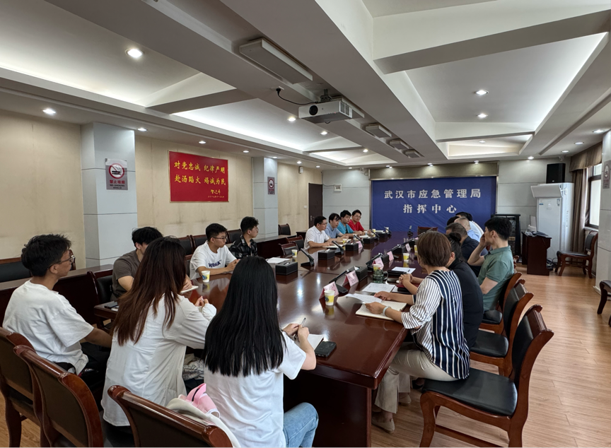 7月8日上午,在武汉市应急管理局召开了教学实习启动会。武汉市应急管理局副局长喻思源,指挥中心主任周全进(一级调研员),调查评估和统计处、安全生产综合协调处、组织人事处、救灾与物资保障处、规划科技和信息化处、政策法规和宣教处等相关处室的领导出席了本次会议。