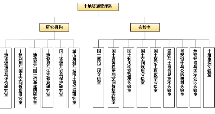 机构设置:土地资源管理系集教学与科研于一体,在不断完善本科专业教学的同时,持续加强专业实验室和相关方向研究中心(所、室)的建设,形成了结构合理、特色鲜明、专业方向交叉、实验环境先进的教学平台体系。现拥有土地勘测实验室、土地规划实验室、土地信息实验室、土壤重构实验室等9个实验室,与北京舜土、南方数码、湖北永业行评估咨询有限公司、国家自然资源督察武汉局、中国国土勘测规划院、青海省国土空间规划研究院、钦州市自然资源局、惠州市自然资源局、湖北长阳土家族自治县自然资源和规划局、湖北省神农架林区等多个用人单位建立了产学研基地。